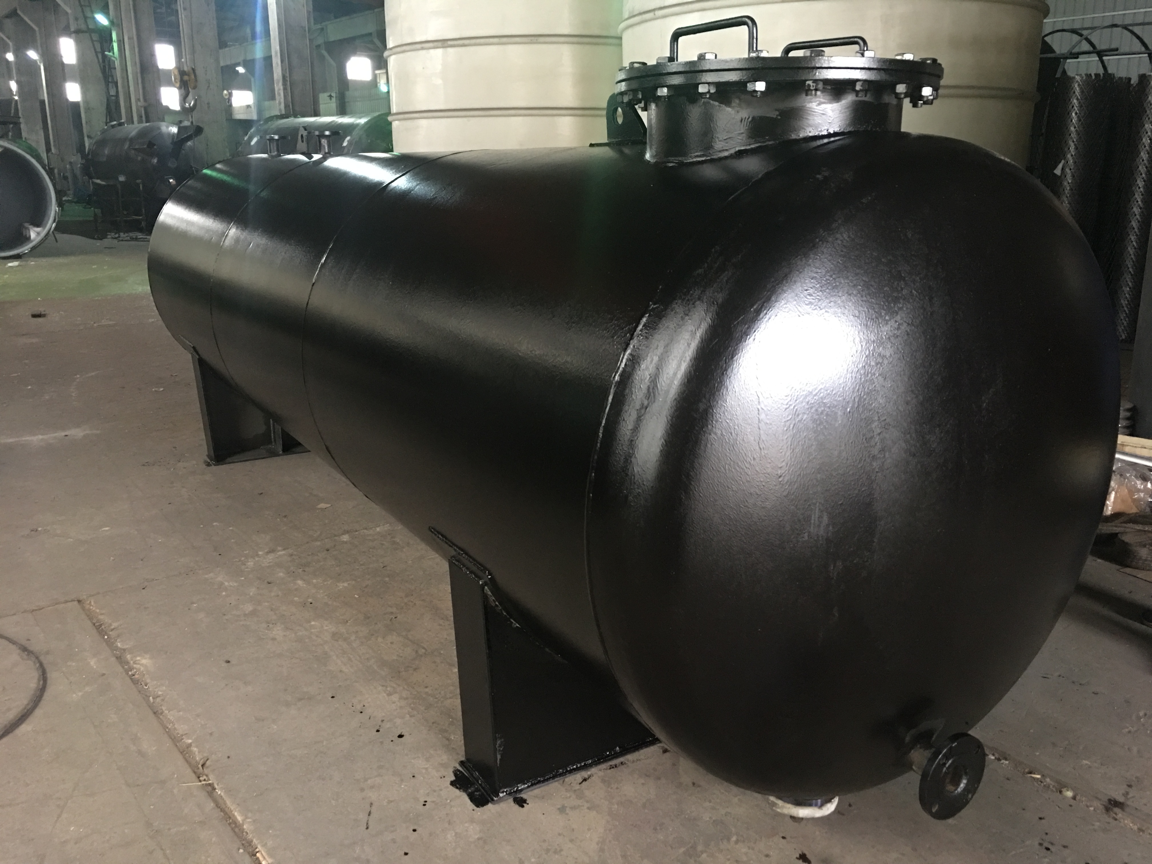 钢衬塑储罐适用于不同浓度(0-98%)的纯净硫酸溶液的储存。碳钢储罐适用80%以上工业级或粗品浓硫酸的储存,溶液中会带入铁离子等金属离子。